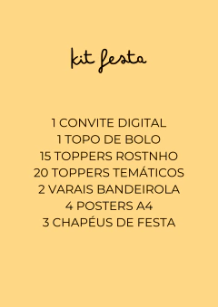 Papelaria disponível nos tamanhos: MESVERSÁRIO, MINI FESTINHA, FESTA E FESTÃO. Passe para o lado para visualizar o que acompanha cada pacote e selecione o seu.
